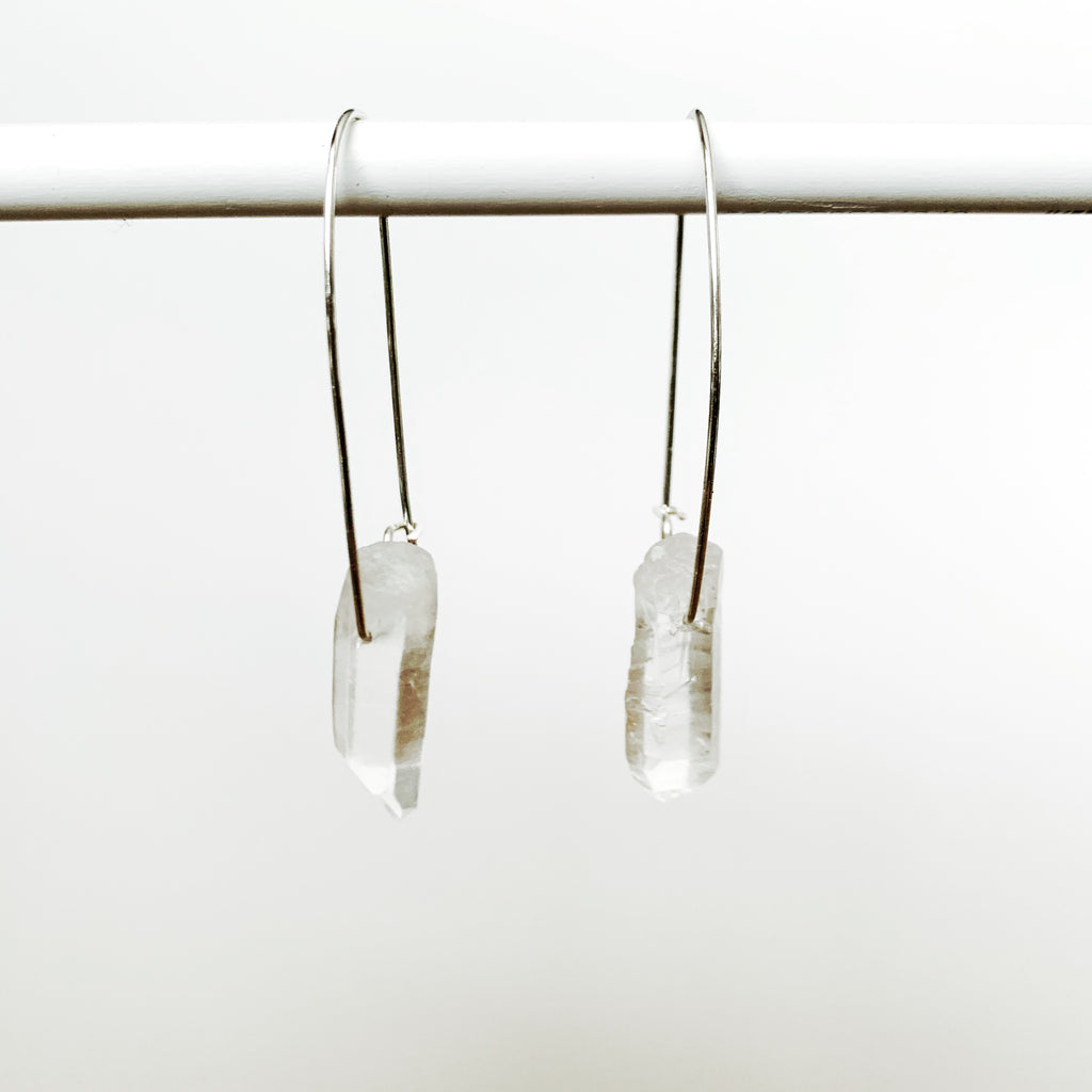 Hand-twisted kidney clasps are nickel-free gold plated copper wire and stones are natural quartz.