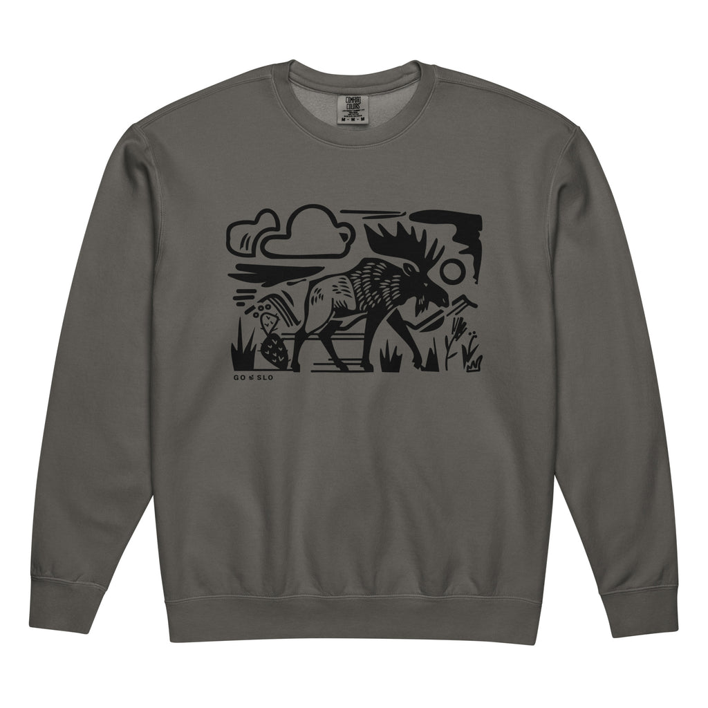 Printed on our signature garment-dyed crew sweatshirt that feels perfectly worn from day one. It’s the go-to for long drives, local hangs, and anyone who secretly thinks the high country feels like home.