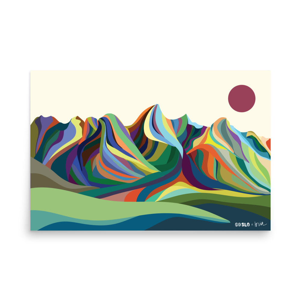Hold onto your hiking boots and prepare to have your jaw drop with our mind-blowingly magnificent, modern illustrated poster showcasing the iconic Grand Teton in the Teton Range! This poster is a wild explosion of colors that will leave you questioning if you've entered an alternate universe where rainbows reign supreme.