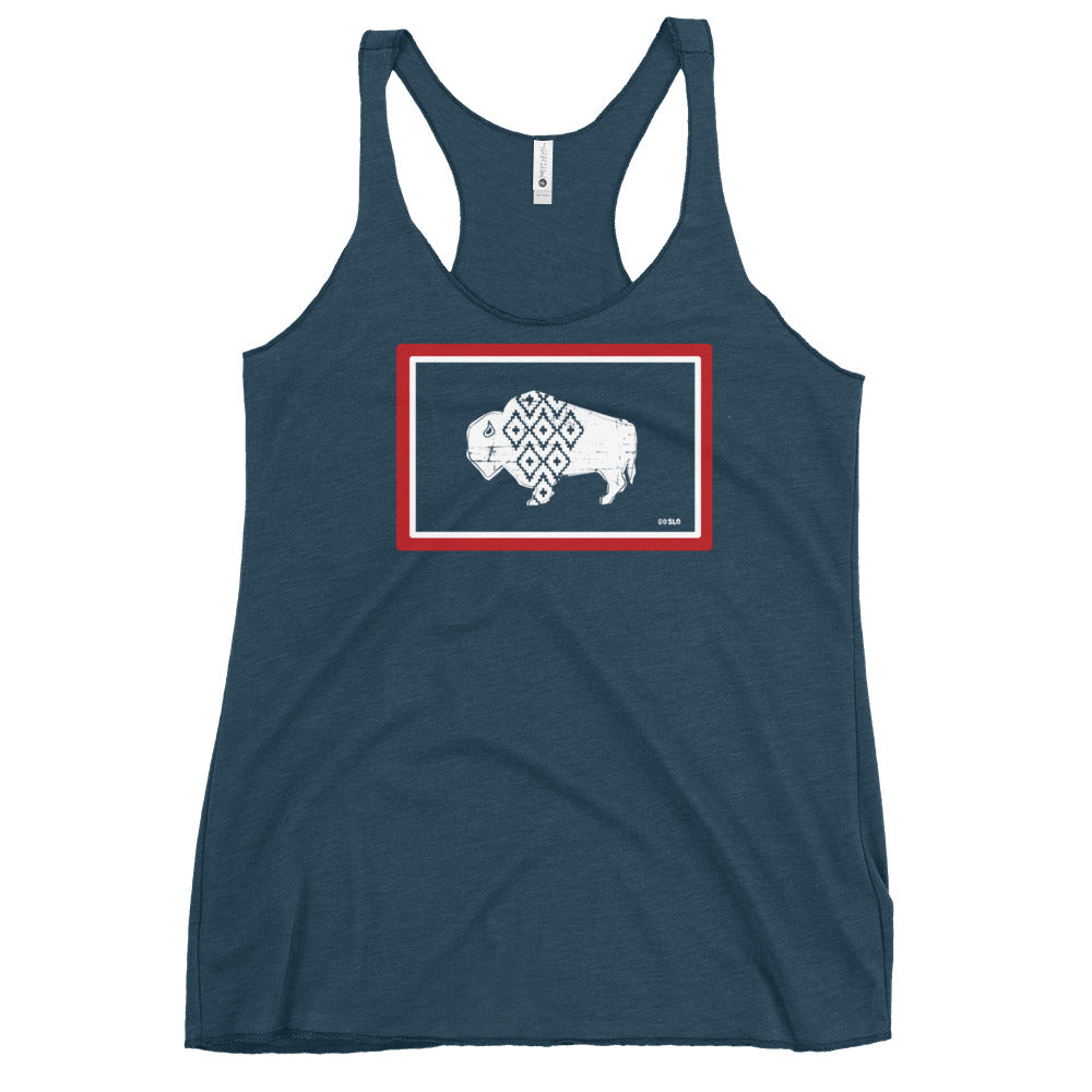 Gals Go Slo Wyo Flag Racerback Tank