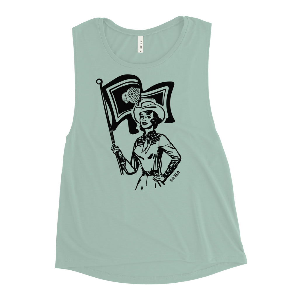 This comfortable muscle tank is soft and flowy with low cut armholes for a relaxed look.