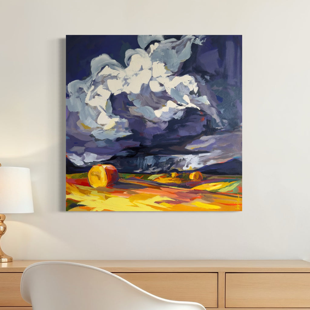 Painted by Bria Hammock, this one-of-a-kind piece leaves the story wide open, whether it’s a summer storm rolling in or the first rain after a long dry spell. The original carries every layered stroke and texture, making it a true statement for any space that craves wild energy and nature’s quiet drama.