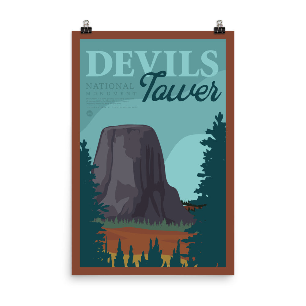 Vintage inspired and designed by our in-house artist, Bria, this Devils Tower poster brings one of Wyoming's best right to your wall!