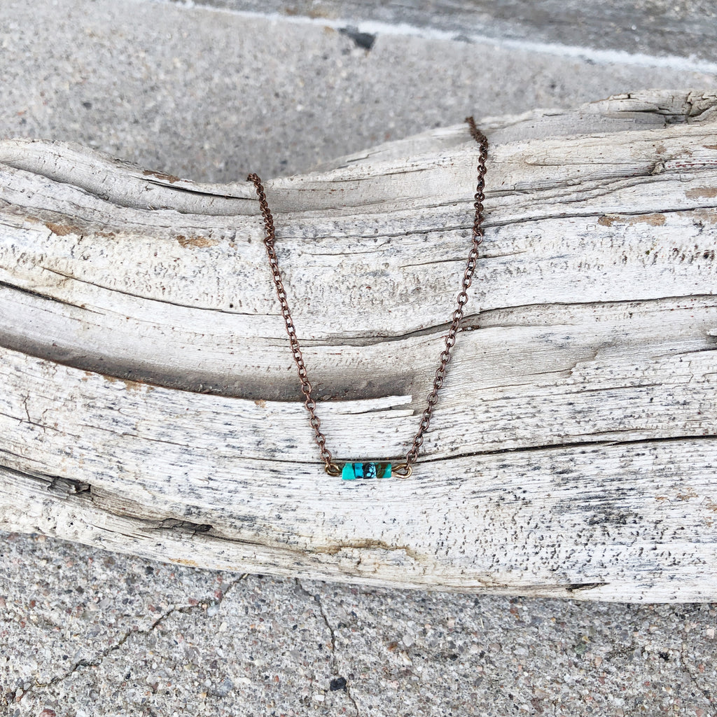 Hand-beaded and crafted in Wyoming, this 33" minimalist heishi turquoise piece is perfect for layering with any outfit.