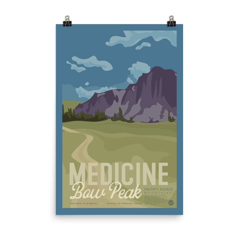 Vintage inspired and designed by our in-house artist, Bria, this Medicine Bow Peak poster brings one of Wyoming's best right to your wall!